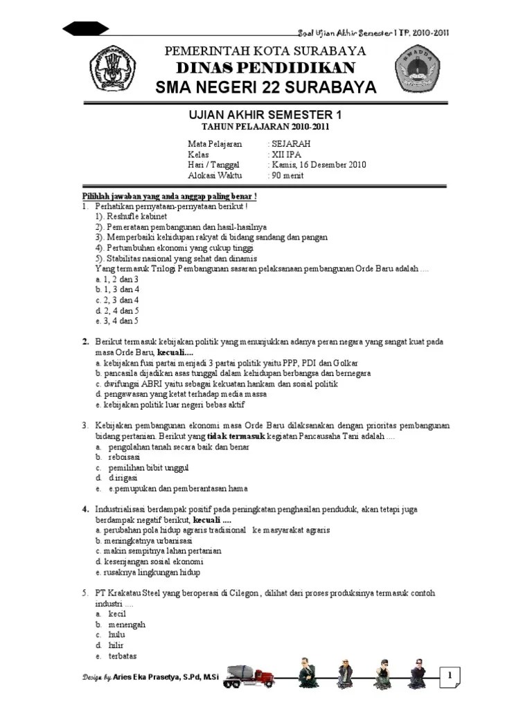 Berikut ini adalah rincian soal uas sejarah kelas 10 smama semester 1. Bung karno penyambung lidah rakyat indonesia karya cindy adams b. 61 70 soal kelas 11 sma semester 1 pilihan ganda dan jawaban 61. Contoh soal essay bahasa indonesia kelas x semester 1 soal pas bahasa . Berikut di bawah ini, contoh soal sejarah kelas x kurikulum 2103 semester ganjil beserta jawabannya bagian kedua, soal dimulai dari nomor 31 .